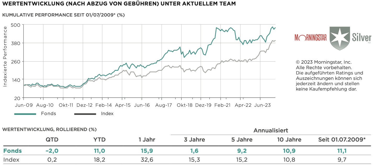 Die frühere Wertentwicklung lässt nicht auf zukünftige Renditen schließen. Fonds, die sich auf eine bestimmte Region oder einen Marktbereich spezialisieren, können höhere Risiken bergen als Fonds, deren Anlagen sehr breit gefächert sind. Anleger sollten vor einer Anlageentscheidung das Basisinformationsblatt und den Verkaufsprospekt lesen, die weitere Informationen zu den Risiken einer Anlage und den Eigenschaften und Zielen des jeweiligen Fonds enthalten. Diese Dokumente können in elektronischer Form auf der Webseite comgest.com in deutscher Sprache abgerufen werden. Comgest kann jederzeit beschließen, die für den Vertrieb getroffenen Vereinbarungen zu beenden.