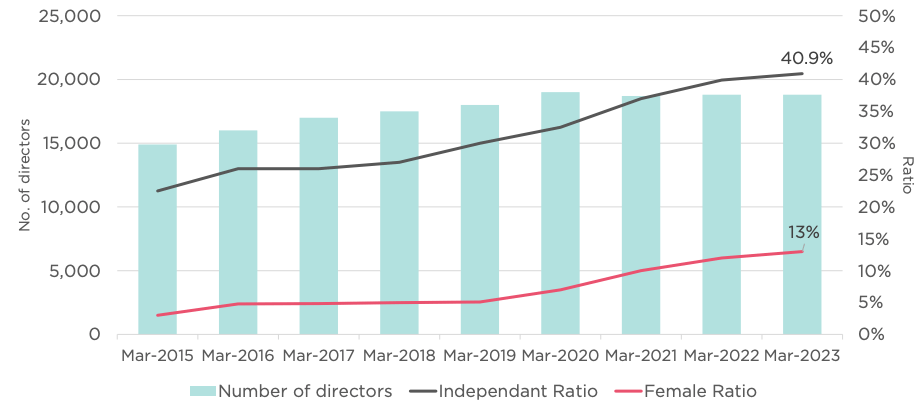 Corporate governance reform is another development that is starting to bear fruit in Japan as more and more Japanese companies are adopting strategic and targeted strategies. The introduction of Japan’s Corporate Governance Code in 2015 has resulted in the appointment of more independent directors (as seen in figure 5), increased shareholder activism and improved return on invested capital (ROIC).5 While regulatory changes have helped, we also believe that many Japanese companies understand that good governance is in their own interest. As long-term quality growth investors, we believe that this enables deeper engagement with Japanese companies.