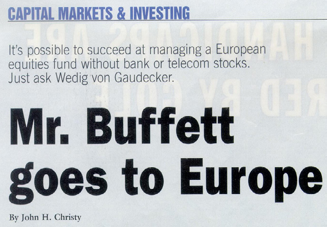 Un'ulteriore svolta fa crescere la statura dell'azienda nel mondo anglosassone: nel febbraio 2000, un giornalista della rivista Forbes contatta Comgest per un'intervista. Alla domanda sull’approccio e sui modelli a cui si ispira Comgest, von Gaudecker fa riferimento a Buffett e Munger, nonché a Phil Fisher, la cui filosofia “Azioni comuni e utili non comuni” aveva fortemente influenzato Munger. Data la notorietà di Buffett nel settore, la fortuna sorride nuovamente a Comgest grazie al titolo dell’articolo “Mr. Buffett Goes to Europe (Il sig. Buffett va in Europa)”.